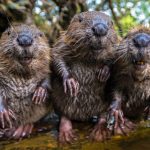 - Biosphärenreservat Spreewald, Unterspreewald, Brandenburg, Deutschland, Wasserwandern, Kajaktouren, Naherholungsgebiet, Flusslandschaft, Wildnis, Biber am Flussufer, Biberbau